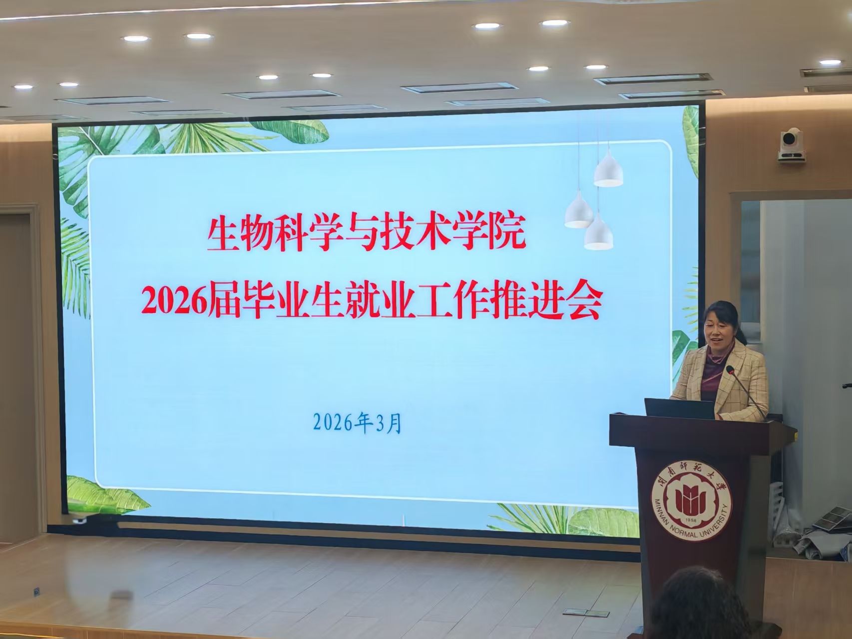 在达南106召开2026届毕业生就业工作推进会。学院班子成员、全体辅导员和专任教师参会。会议由学院党委副书记陈文婷主持。