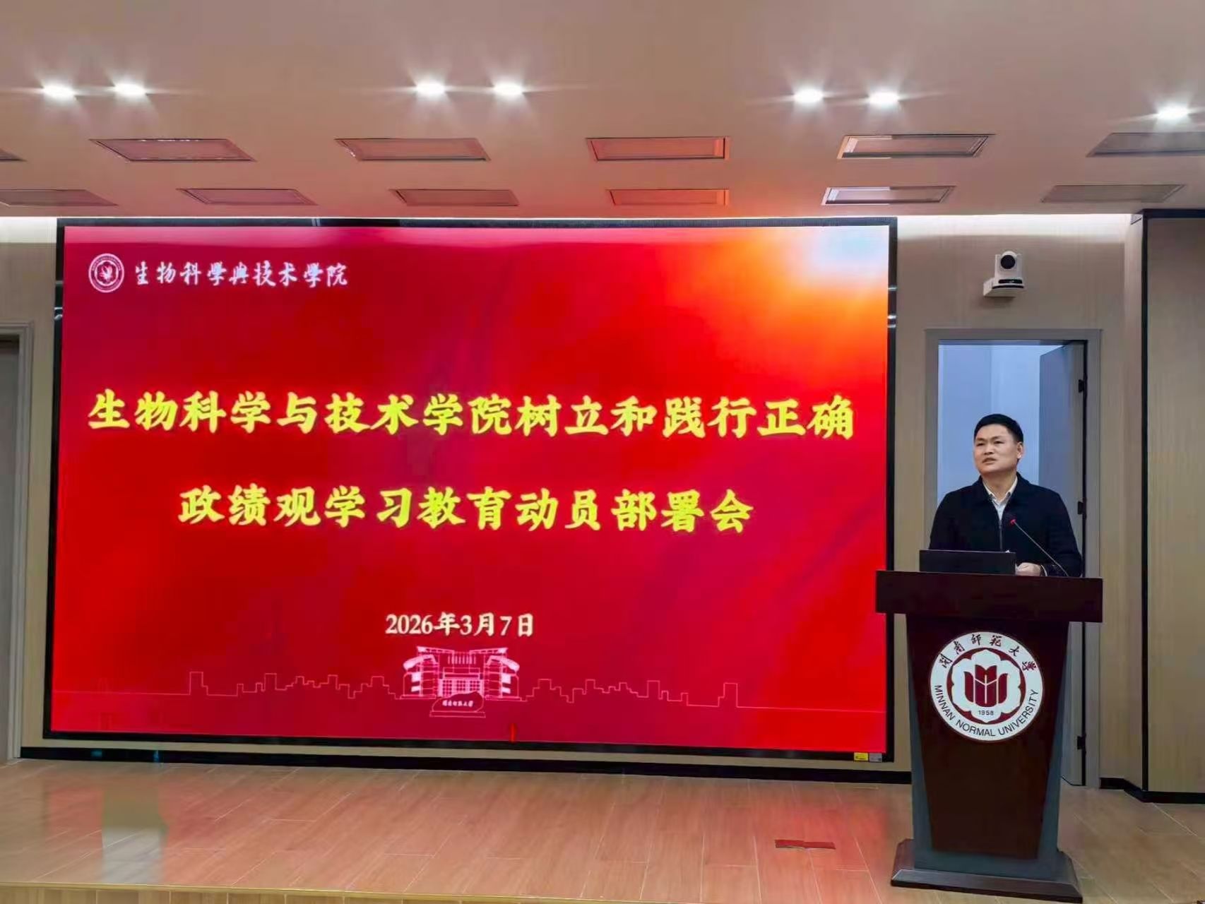 在达南106召开全院大会,认真学习习近平总书记关于树立和践行正确政绩观的重要讲话和重要指示精神,传达学习了上级关于开展树立和践行正确政绩观学习教育的有关文件精神和重要要求,研究部署学院开展树立和践行正确政绩观学习教育工作,会议由学院党委书记连恩德主持。