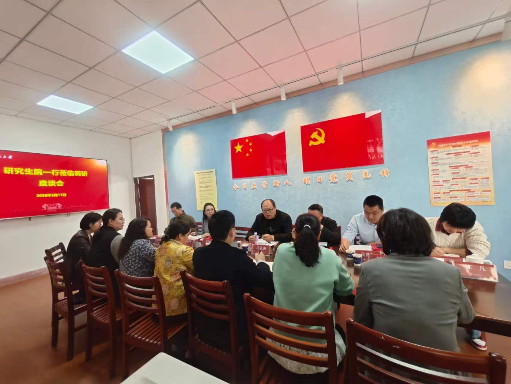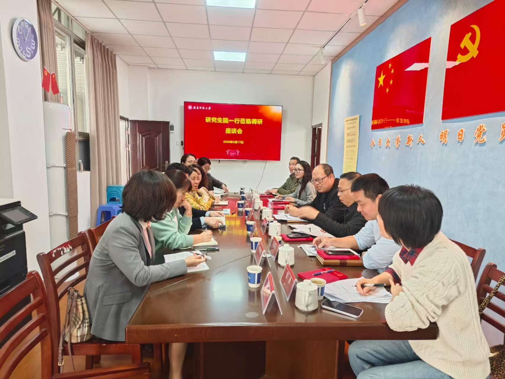 ,开展研究生工作专项调研指导。学院领导班子成员、各学位点负责人、研究生秘书参加调研座谈会。