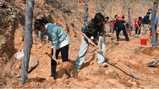师生迅速投入到植树劳动中。大家分工协作、默契配合,挥锹铲土、扶苗填坑、培土夯实、提桶浇水,每道工序都细致认真,接连种下多棵黄花风铃木树苗。一棵棵新栽的树苗迎风挺立,错落有致,为初春的大地增添了勃勃生机。