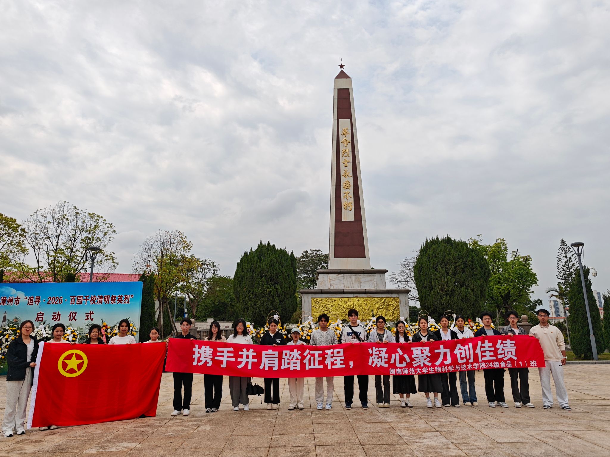 组织师生代表前往漳州市烈士陵园开展“清明祭英烈”活动。活动结合漳州本地红色革命史料与英烈生平事迹,以清明传统节日为载体,铭记革命历史、致敬英雄先烈,进一步筑牢理想信念之基。