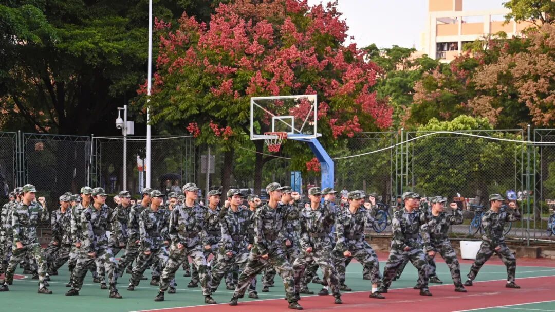 烈日高悬,阳光毫无保留地倾泻在操场的每个角落,连风都带着灼热的气息。栾树的浓荫尚不能完全消解这暑气,而生科学子的军训已行至第六天,当迷彩服被汗水浸得发亮,当青春的莽撞被队列的纪律磨出棱角,军体拳的呼喝、战场救护的专注,还有校领导送来的暖心关怀,正一起把这段炽热的时光,填得满满当当。
