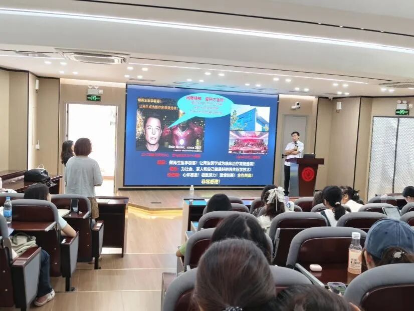 在临床转化成果展示环节,张智勇研究员分享的案例让在场师生深刻感受到技术的温度。针对百岁老人腿部大面积溃烂的截肢风险,团队通过平台技术修复难愈性创面,让老人免于手术;在不孕不育领域,利用干细胞与外泌体技术治疗重度宫腔黏连,帮助十年未孕患者成功受孕;面对新冠间质性肺炎、深度烫伤等临床难题,平台制备的制剂均展现出显著疗效。此外,平台在毛发再生、帕金森辅助治疗等新领域的探索,也为再生医学的应用边界拓展了更多可能,其团队研究成果荣获“国家科技进步一等奖”,研究成果多次被人民日报等权威媒体报道。