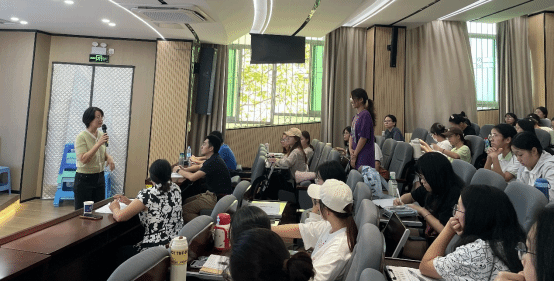 讲座内容翔实,逻辑层层递进。张凌霞老师以其深厚的教学功底和丰富的教研经验,系统阐述了“深度备课”的六大核心维度——从源头的课标解构与教材解读,到关键的学情分析,再到最终的目标制定、评价设计与任务设置。以及“学习化课堂”的四个实践方向——以学为本、少教多学、以学定教、学会学习。讲座中,张凌霞老师强调,一堂好课的背后,是教师对课程标准的精准把握、对学生认知规律的深刻洞察以及对教学材料的创造性运用。通过大量生动的教学实例,张凌霞老师层层剖析了如何设计富有启发性、探究性的学习任务,如何创设问题情境将学科知识与现实生活紧密相连,从而构建一个能激发学生思维活力、促进知识内化的高效课堂。在互动环节,现场气氛热烈,学子们踊跃提问,与张凌霞老师进行了深入交流。